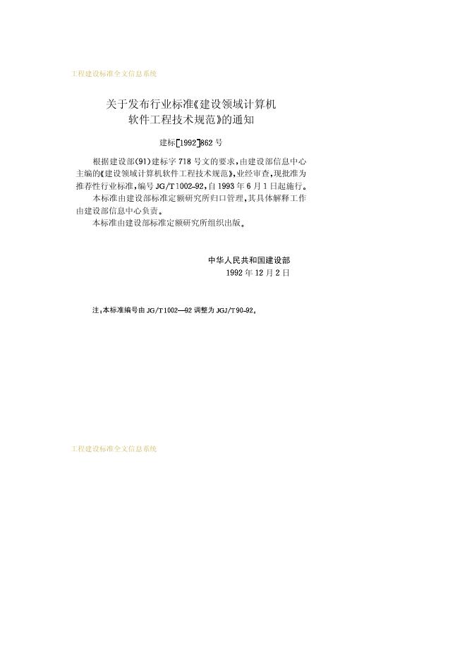 JGJ/T 90-1992 建设领域计算机软件工程技术规范