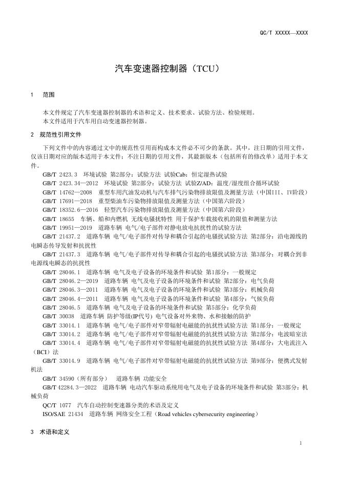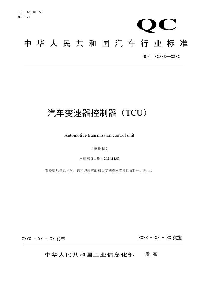 QC/T 1261-2025 汽车变速器控制器(TCU)