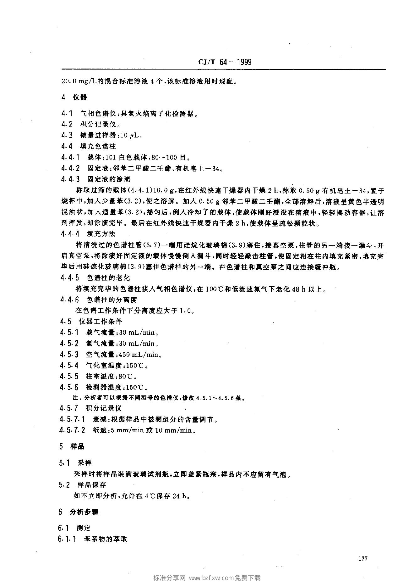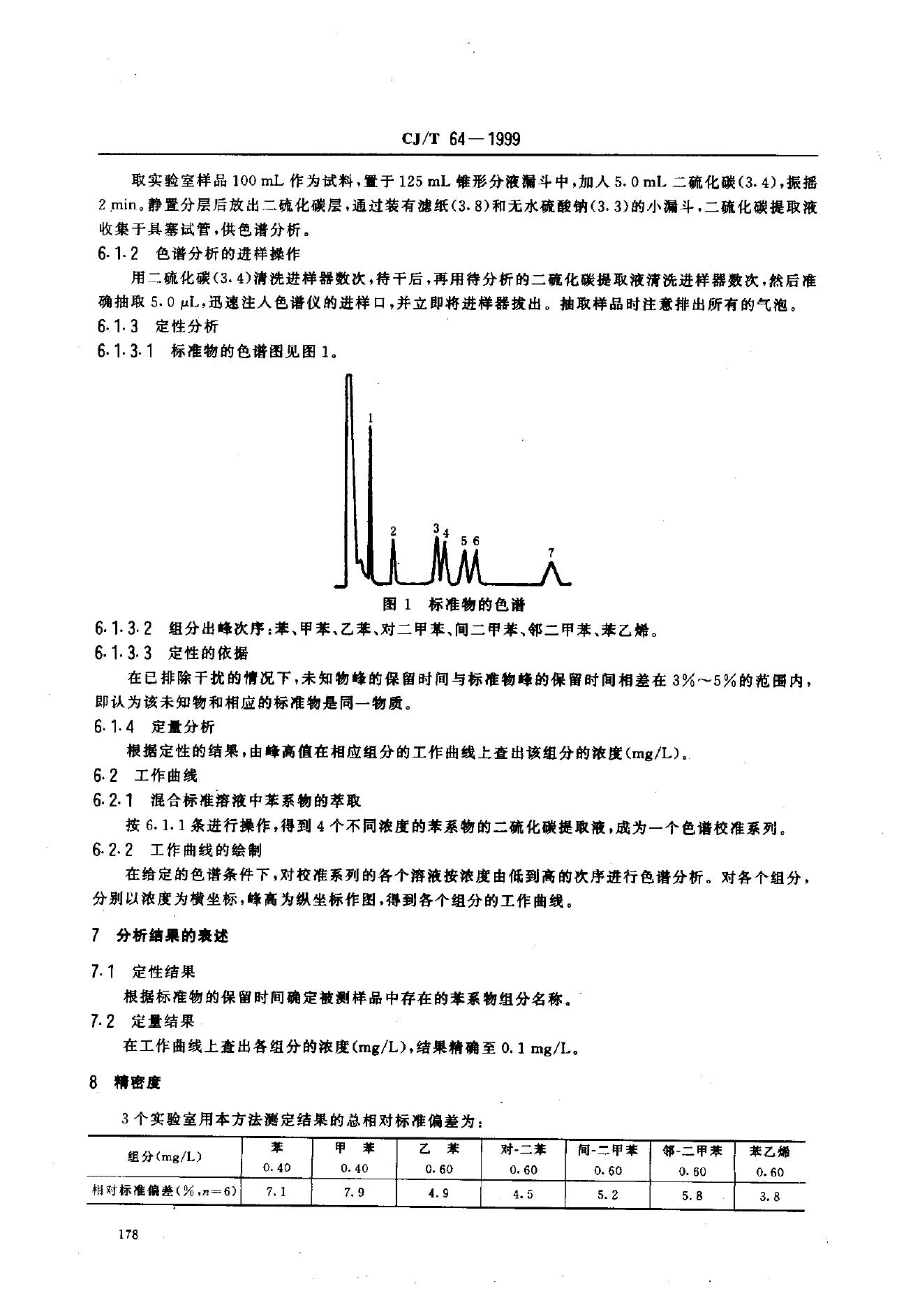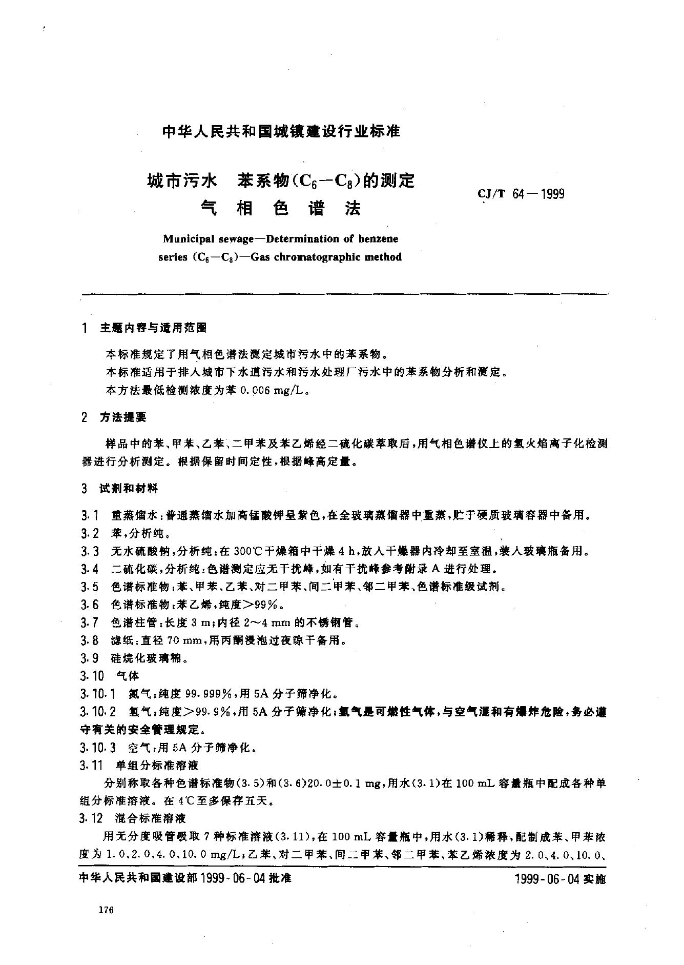 CJ/T 64-1999 城市污水 苯系物(C6-C8)的测定 气相色谱法