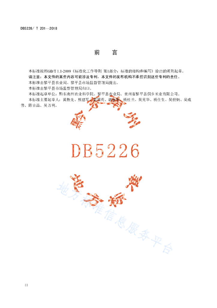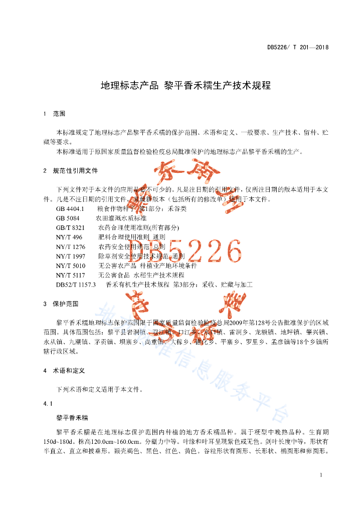 DB5226/T 201-2018 地理标志产品 黎平香禾糯生产技术规程