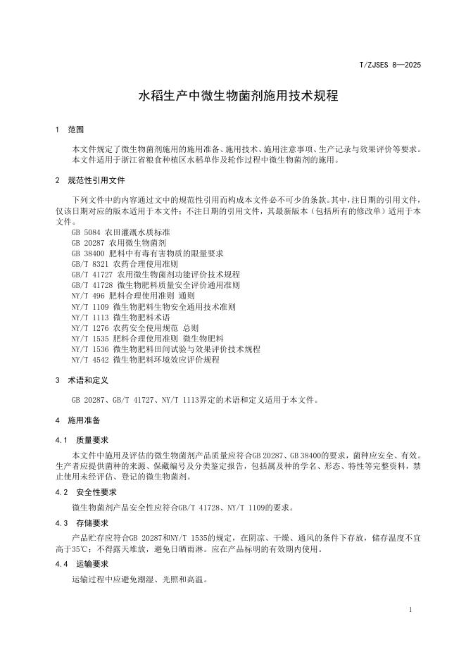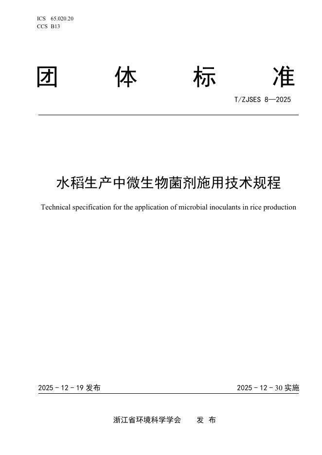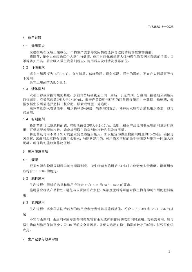 T/ZJSES 8-2025 水稻生产中微生物菌剂施用技术规程