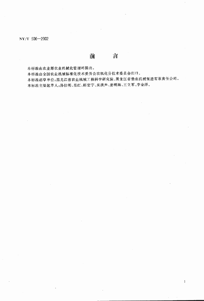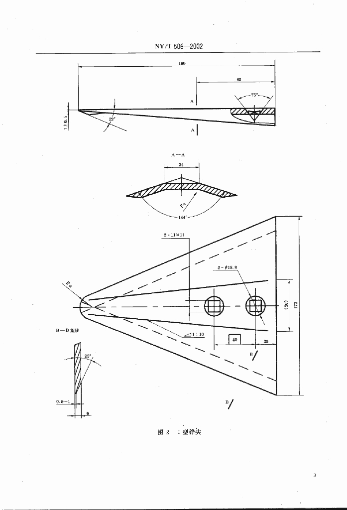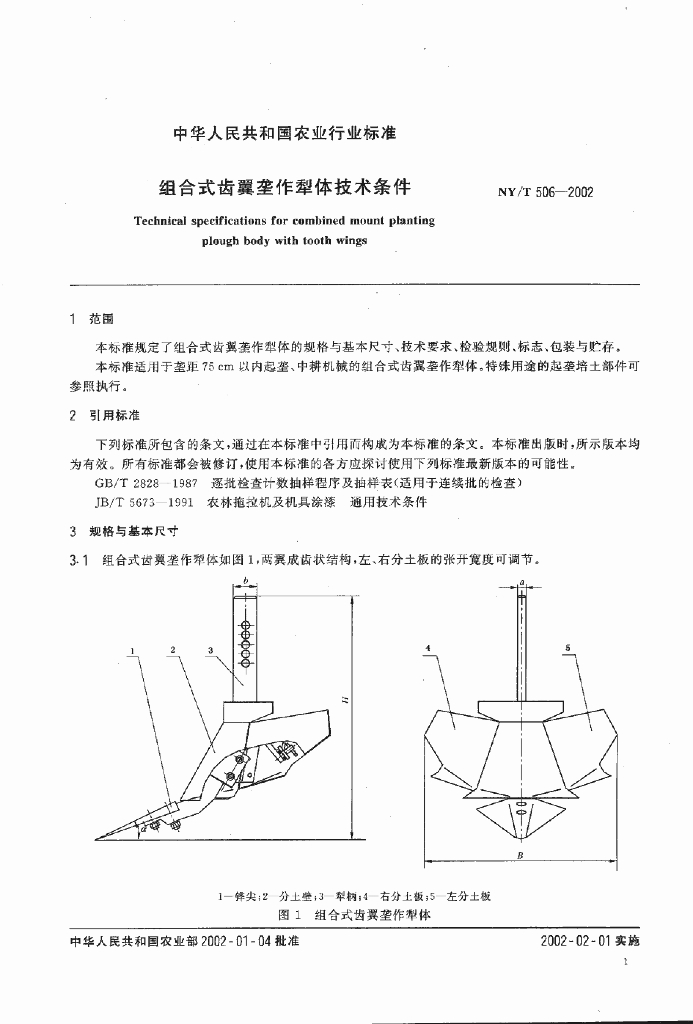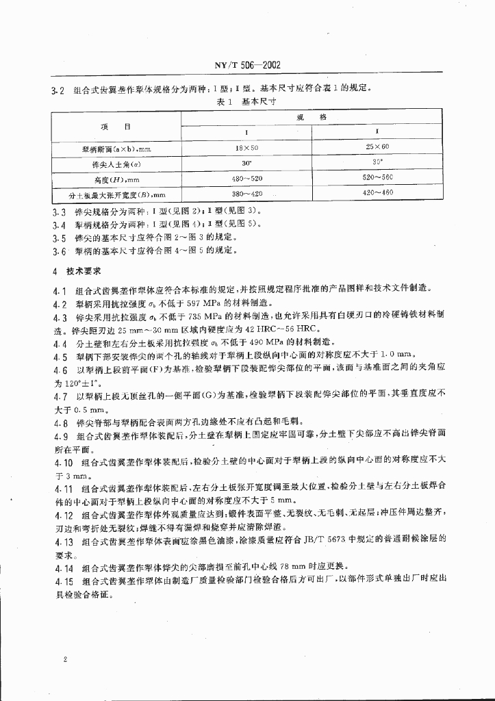 NY/T 506-2002 组合式齿翼垄作犁体技术条件