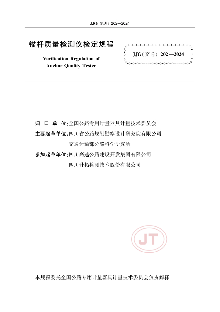 JJG(交通)202-2024 锚杆质量检测仪