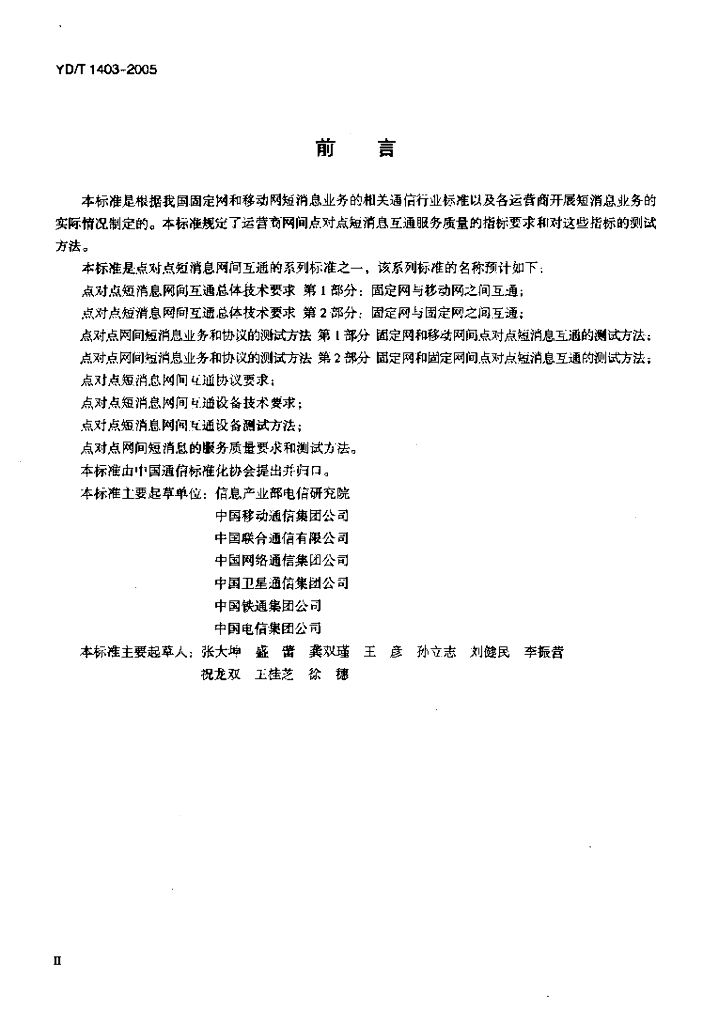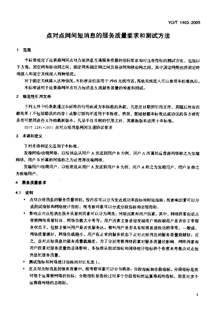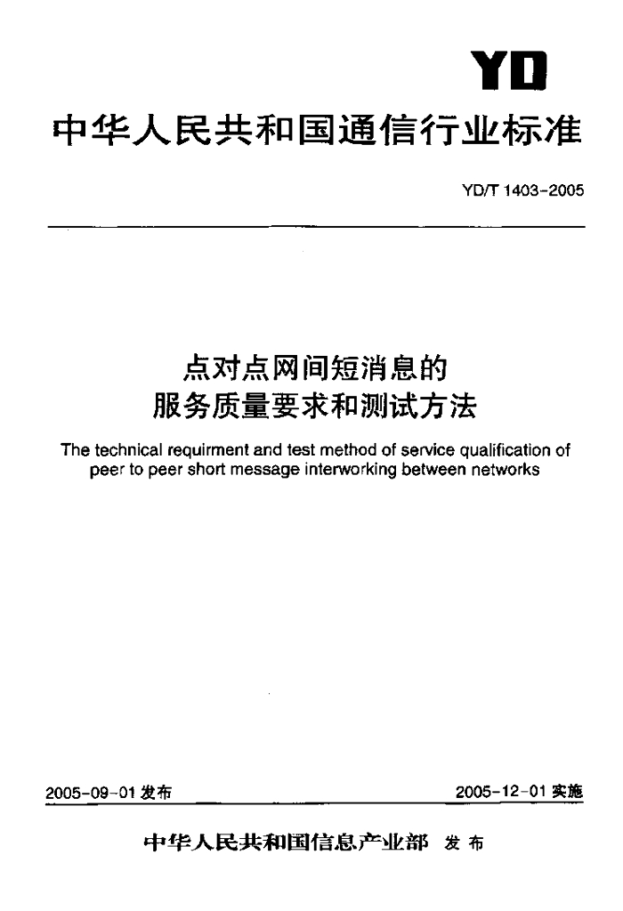 YD/T 1403-2005 点对点网间短消息的服务质量要求和测试方法