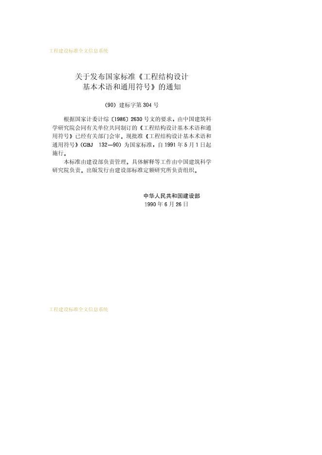 GBJ 132-1990 工程结构设计基本术语和通用符号