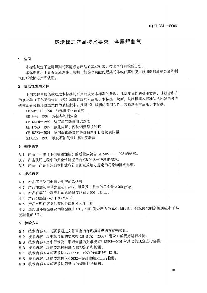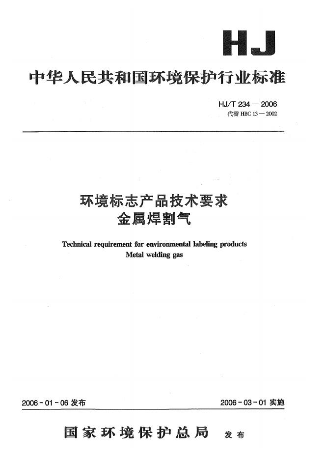 HJ/T 234-2006 环境标志产品技术要求 金属焊割气