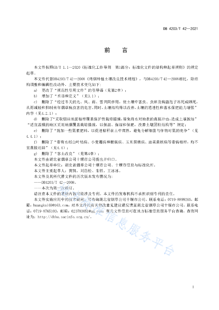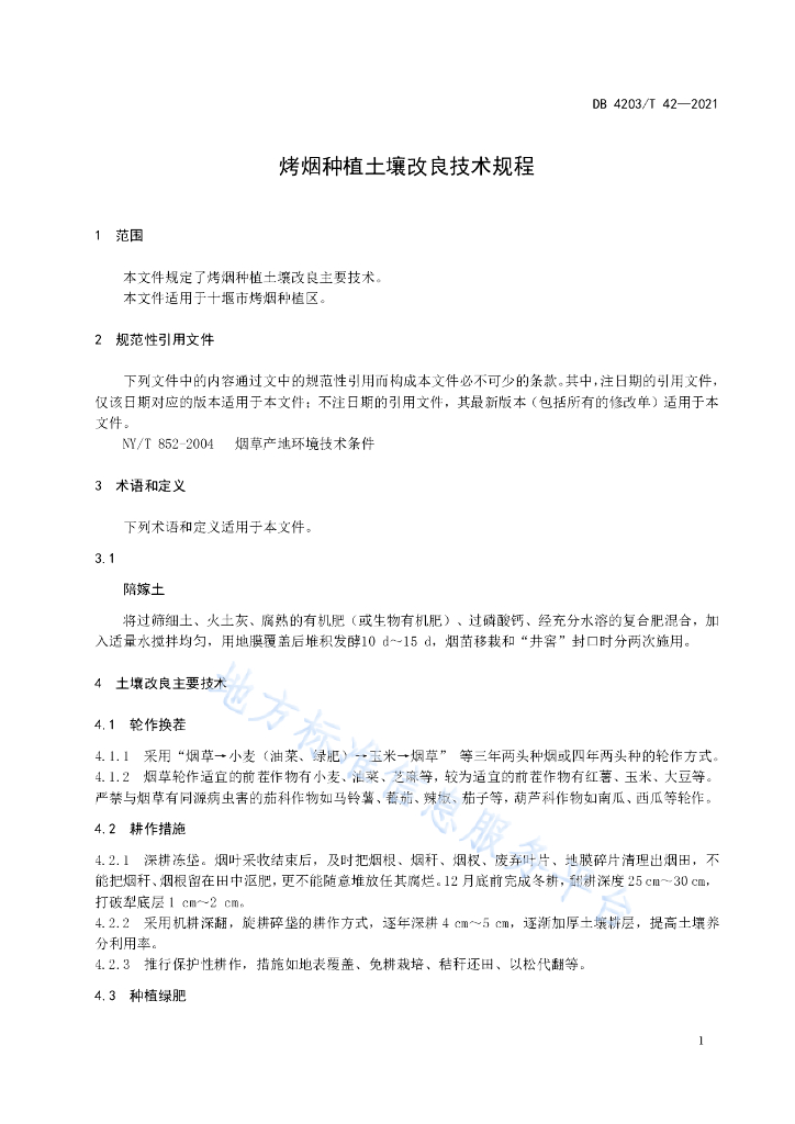 DB4203/T 42-2021 烤烟种植土壤改良技术规程