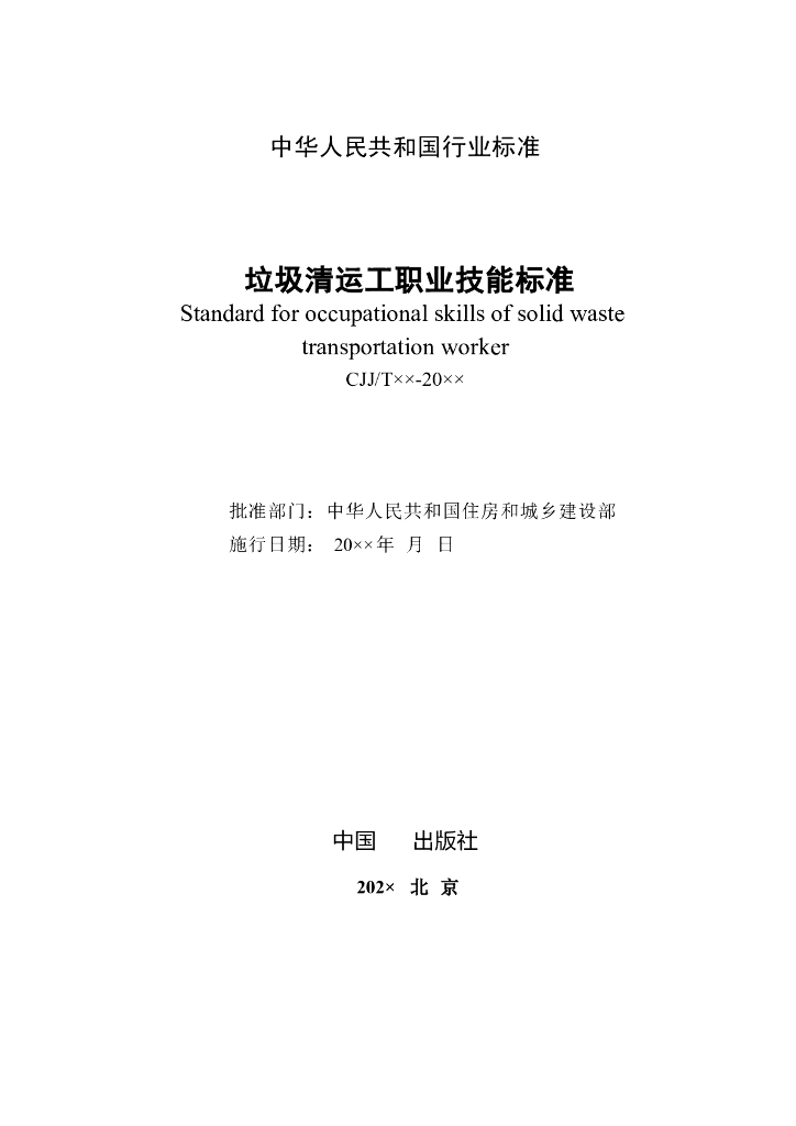 CJJ/T xx-20xx 垃圾清运工职业技能标准(征求意见稿)