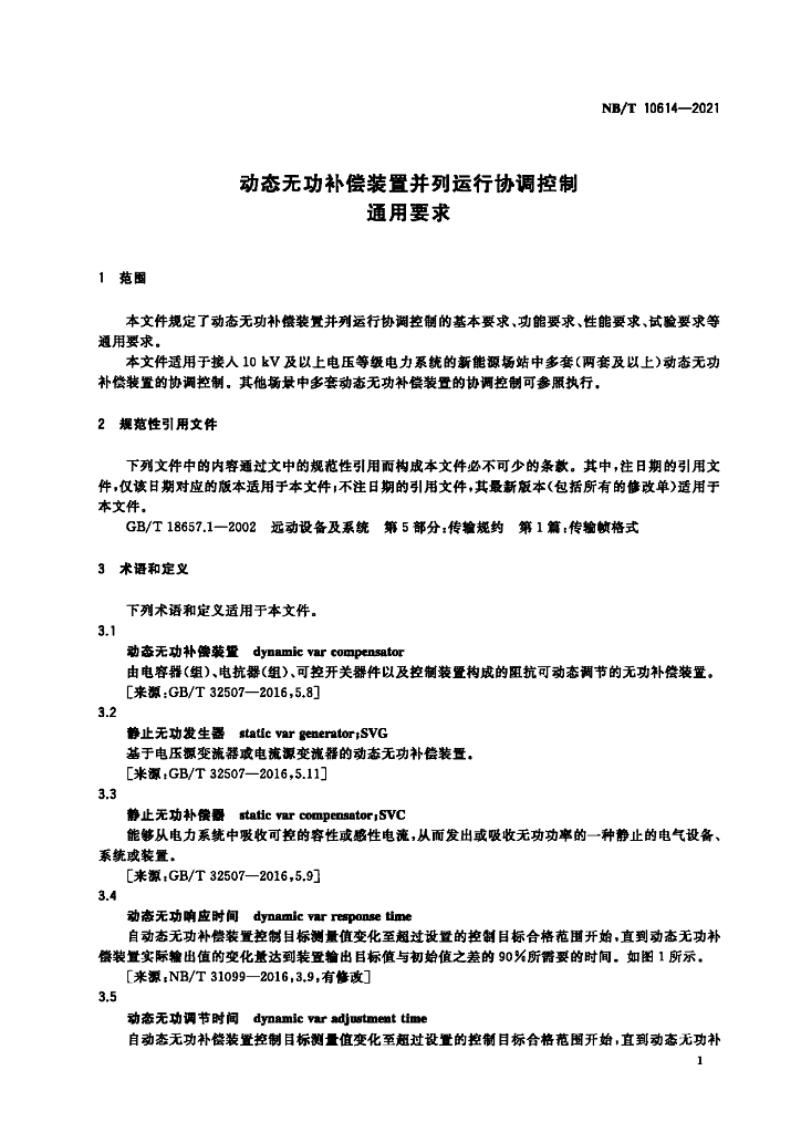 NB/T 10614-2021 动态无功补偿装置并列运行协调控制通用要求