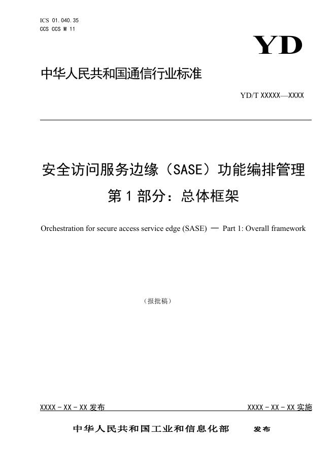 YD/T 6022.1-2024 安全访问服务边缘(SASE)功能编排管理 第1部分:总体框架