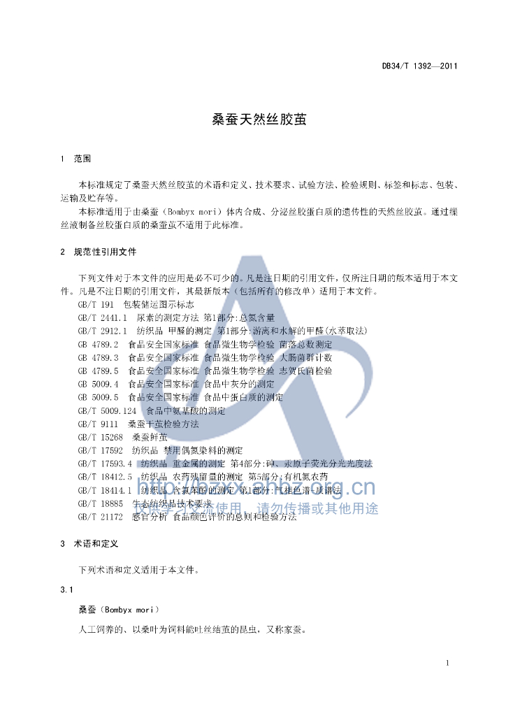 DB34/T 1392-2011 桑蚕天然丝胶茧