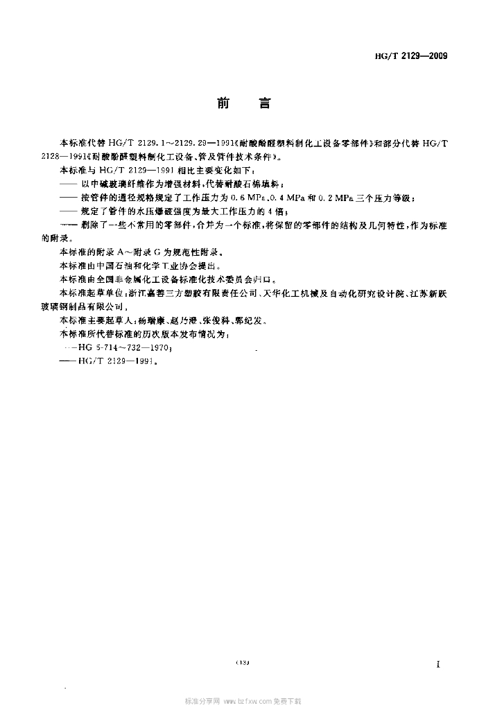 HG/T 2129-2009 代替 HG/T 2129-1991 改性酚醛玻璃纤维增强塑料管件技术条件