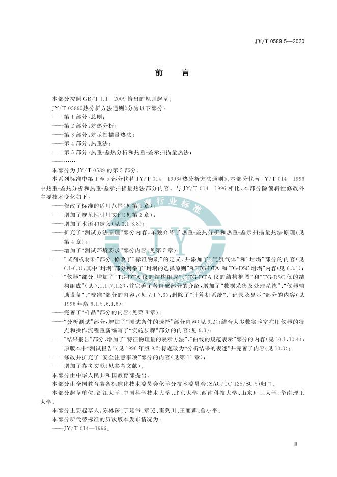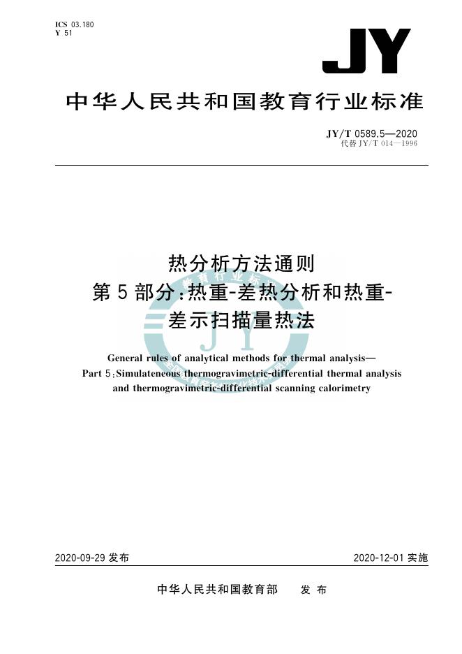 JY/T 0589.5-2020 热分析方法通则 第5部分:热重-差热分析和热重-差示扫描量热法