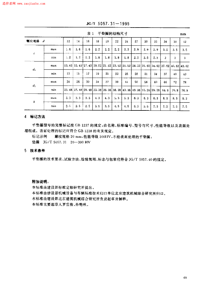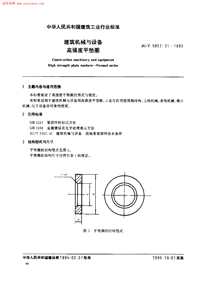 JG/T 5057.31-1995 建筑机械与设备高强度平垫圈规范