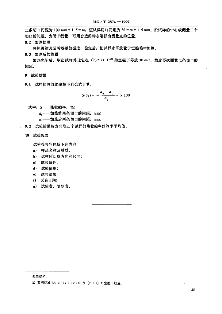 HG/T 2874-1997 鞋用微孔材料热收缩性的测定