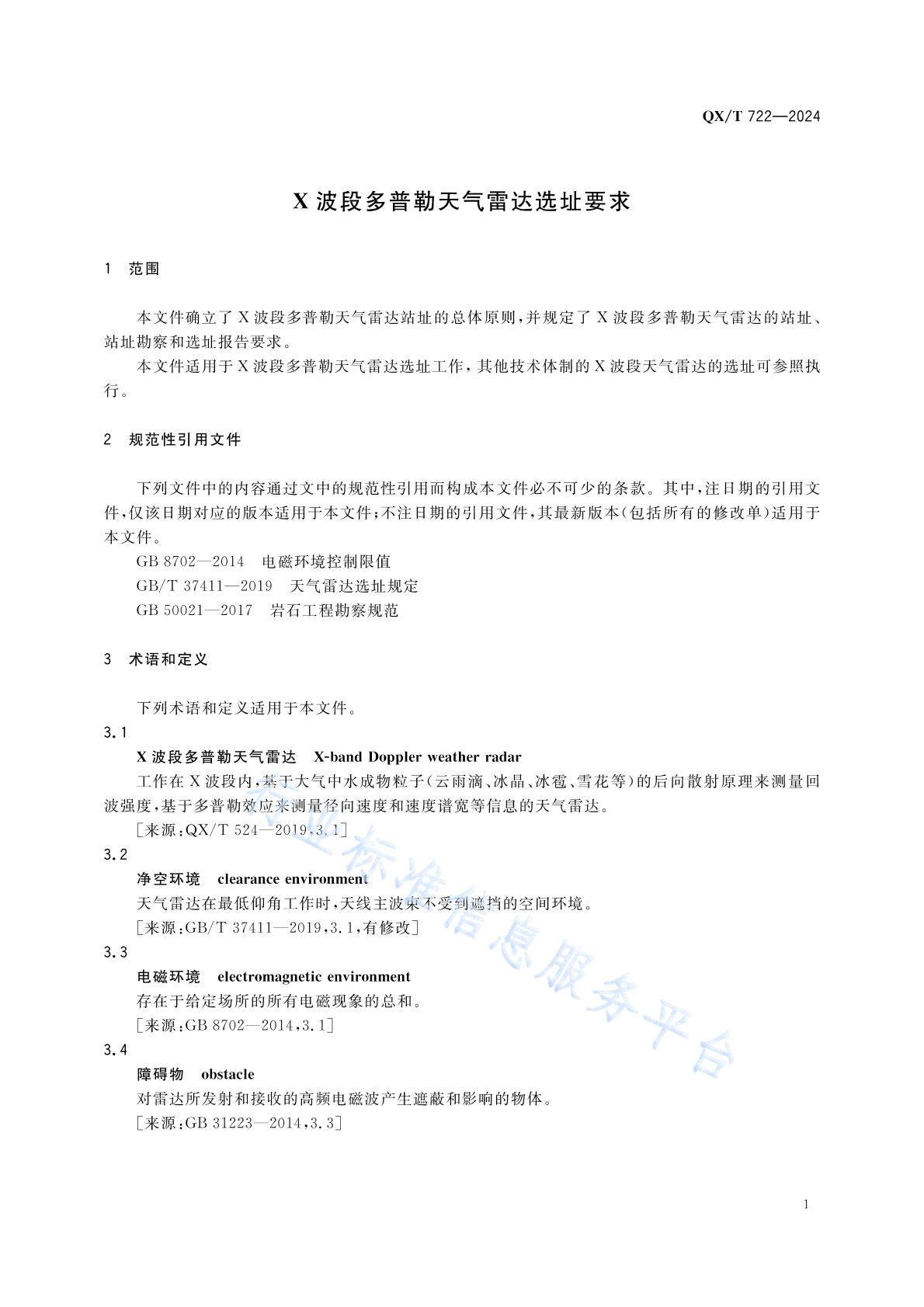 QX/T 722-2024 X波段多普勒天气雷达选址要求