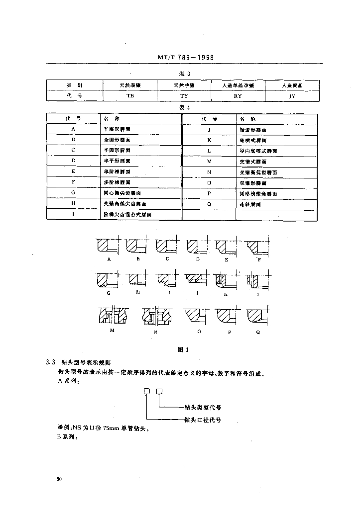 MT/T 789-1998 煤田钻探金刚石取心钻头