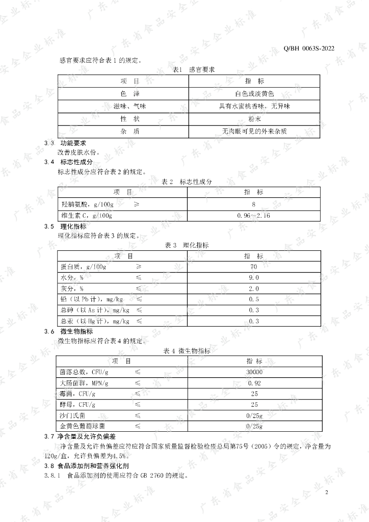 Q/BH 0063S-2022 纽斯康牌胶原蛋白维生素C粉