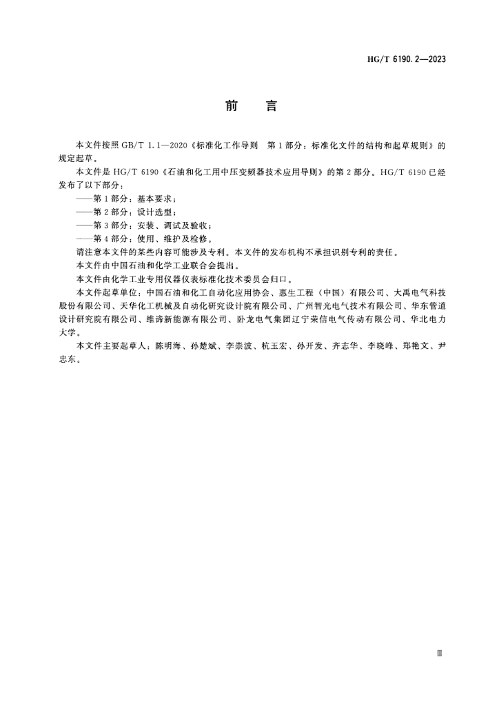 中国石油和化工自动化应用协会、惠生工程(中国)有限公司、大禹电气科技股份有限公司、天华化工机械及自动化研究设计院有限公司、广州智光电气技术有限公司、华东管道设计研究院有限公司、维谛新能源有限公司、卧龙电气集团辽宁荣信电气传动有限公司、华北电力大学