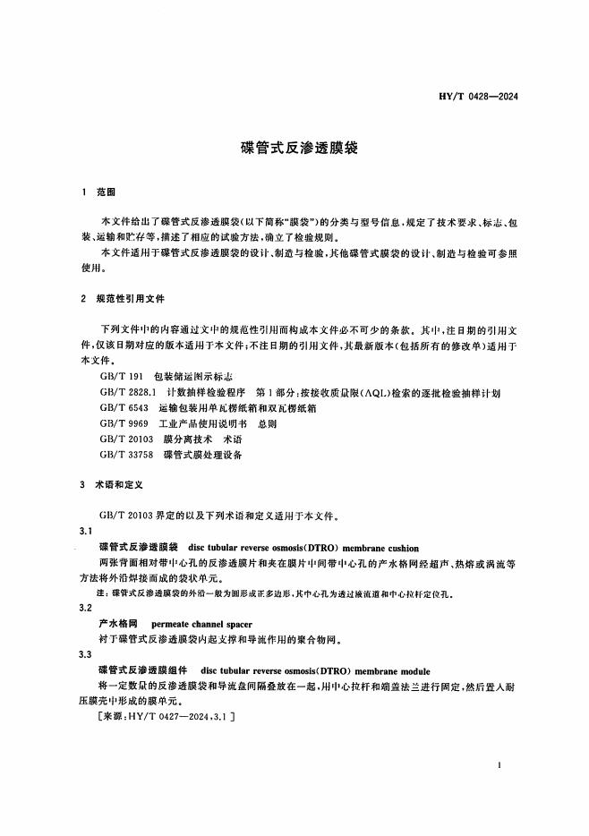HY/T 0428-2024 碟管式反渗透膜袋