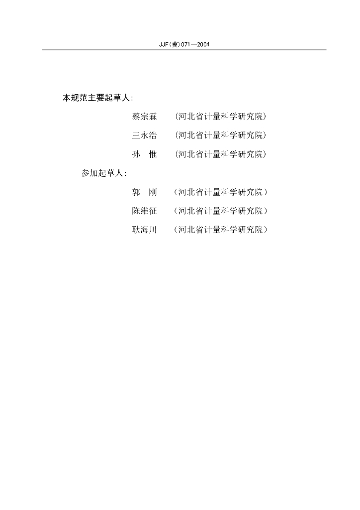 蔡宗霖(河北省计量科学研究院)、王永浩(河北省计量科学研究院)、孙惟(河北省计量科学研究院)、郭刚(河北省计量科学研究院)、陈维征(河北省计量科学研究院)、耿海川(河北省计量科学研究院)