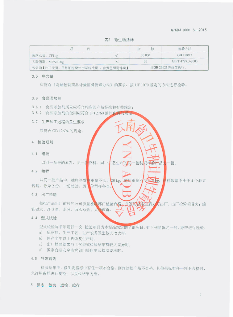 Q/KDJ 0001S-2015 昆明市五华区大佳食品厂 油炸猪皮