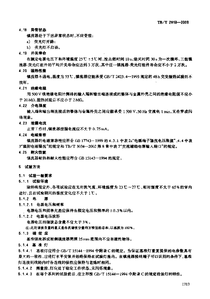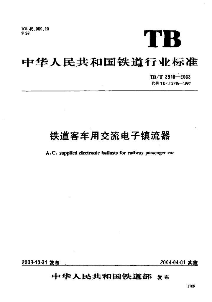 TB/T 2918-2003 铁道客车用交流电子镇流器