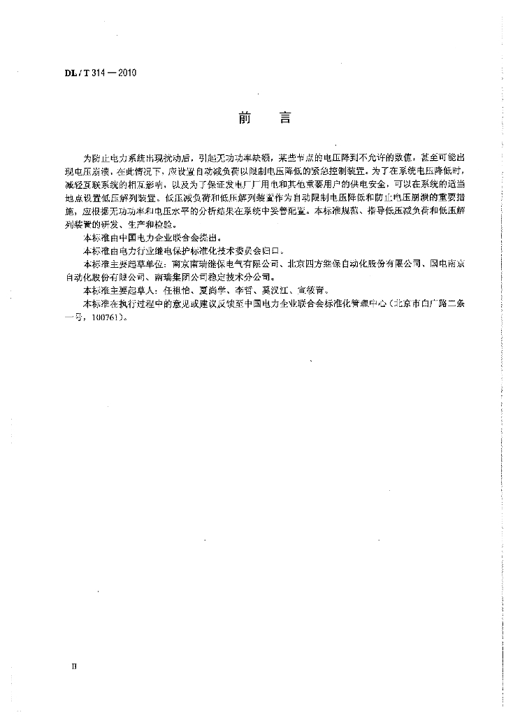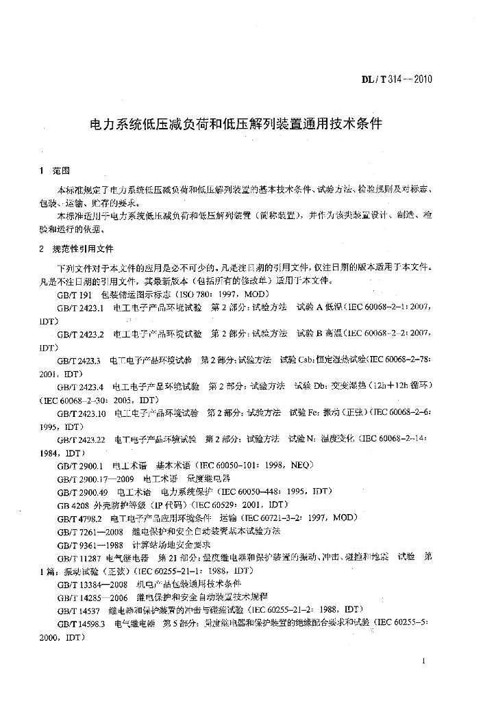 DL/T 314-2010 电力系统低压减负荷和低压解列装置通用技术条件