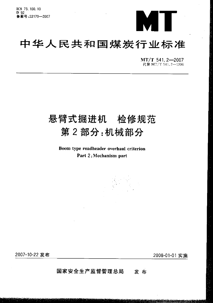 MT/T 541.2-2007 悬臂式掘进机 检修规范 第2部分:机械部分