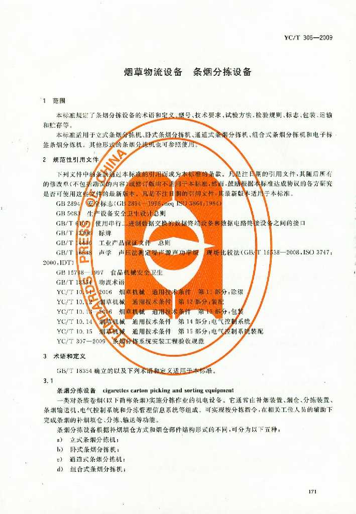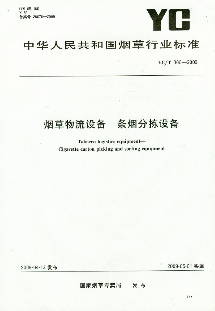 YC/T 306-2009 烟草物流设备 条烟分拣设备