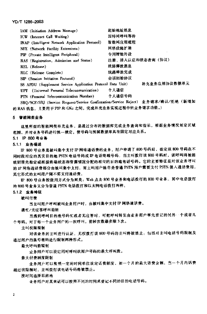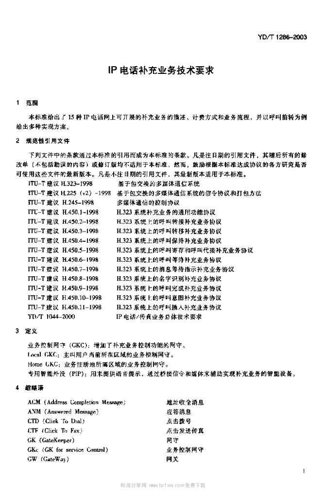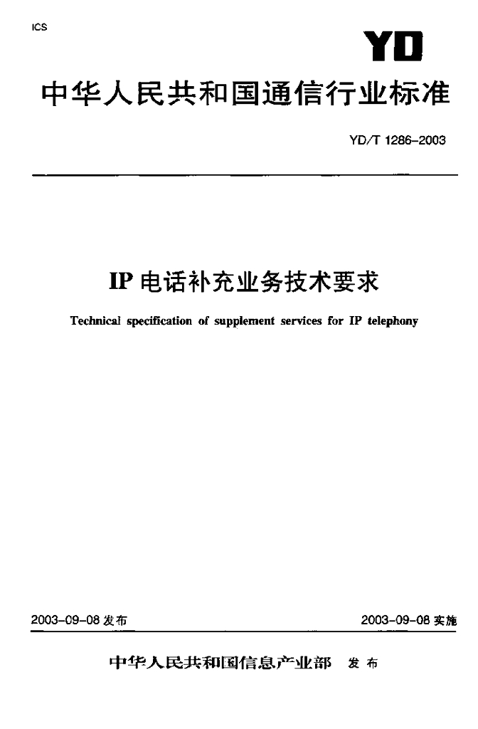 YD/T 1286-2003 IP 电话补充业务技术要求
