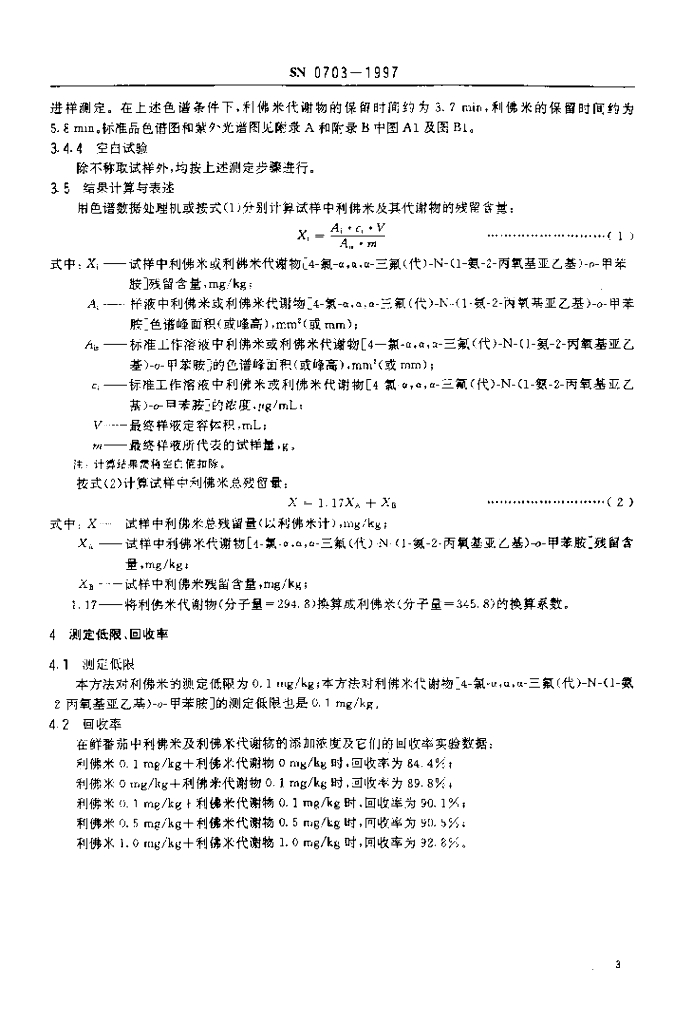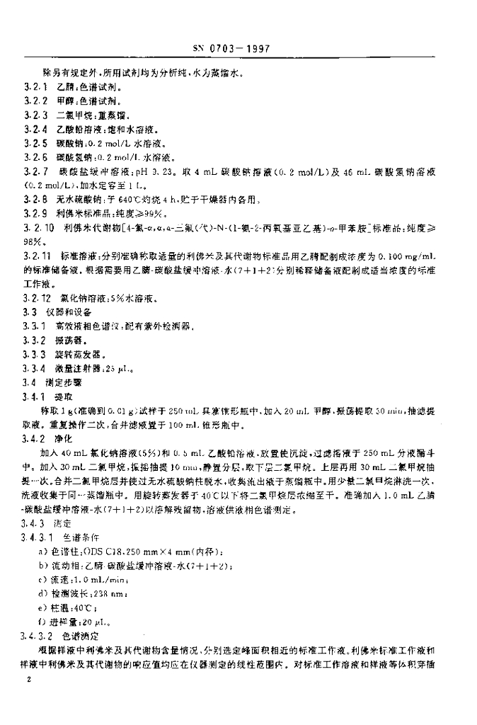 SN 0703-1997 出口蔬菜中利佛米残留量检验方法