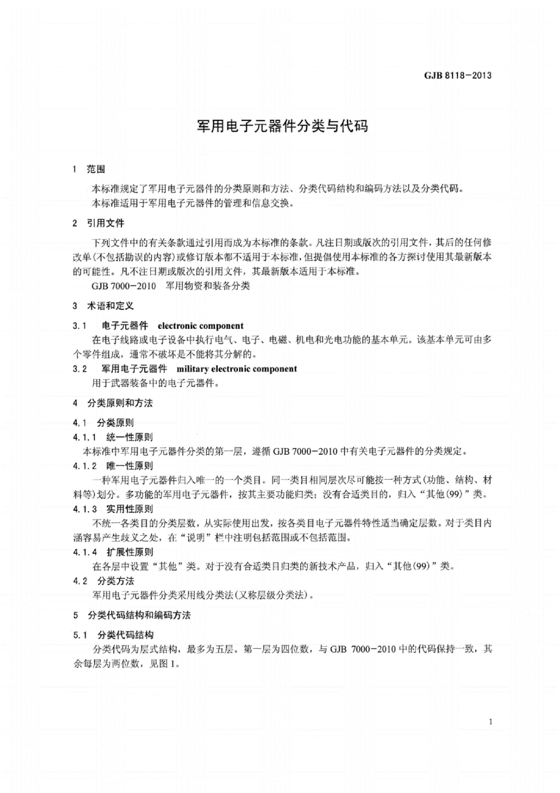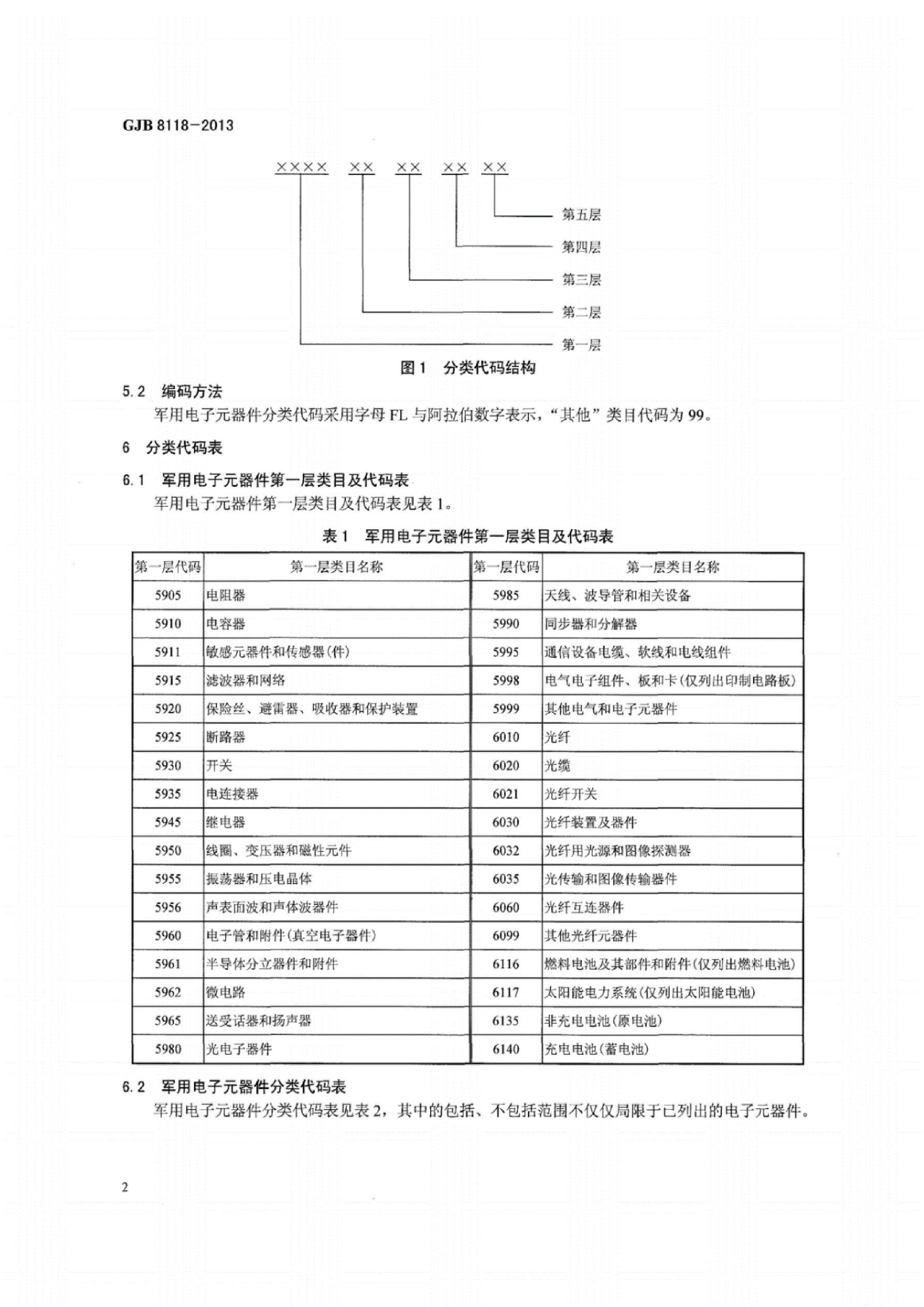 GJB 8118-2013 军用电子元器件分类与代码