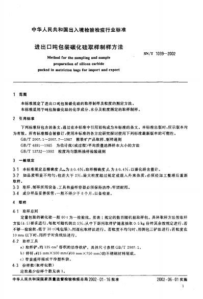 SN/T 1039-2002 进出口吨包装碳化硅取样制样方法