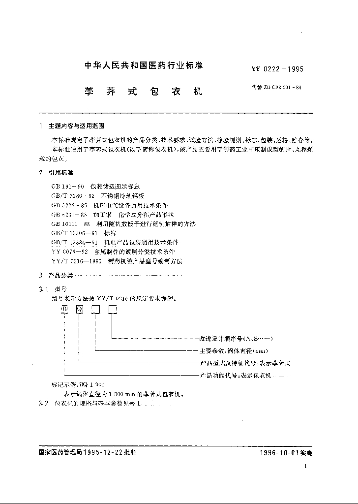 YY 0222-1995 荸荠式包衣机