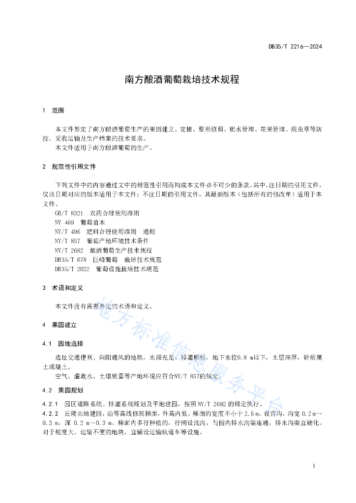 DB35/T 2216-2024 南方酿酒葡萄栽培技术规程