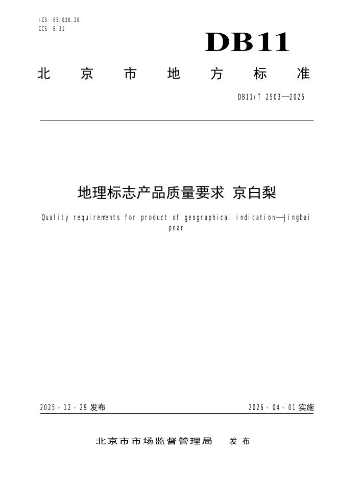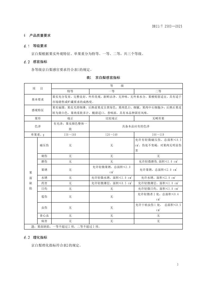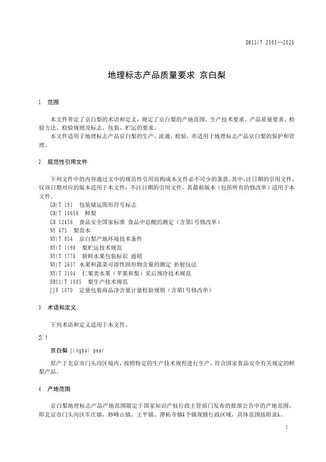 DB11/T 2503-2025 地理标志产品质量要求 京白梨