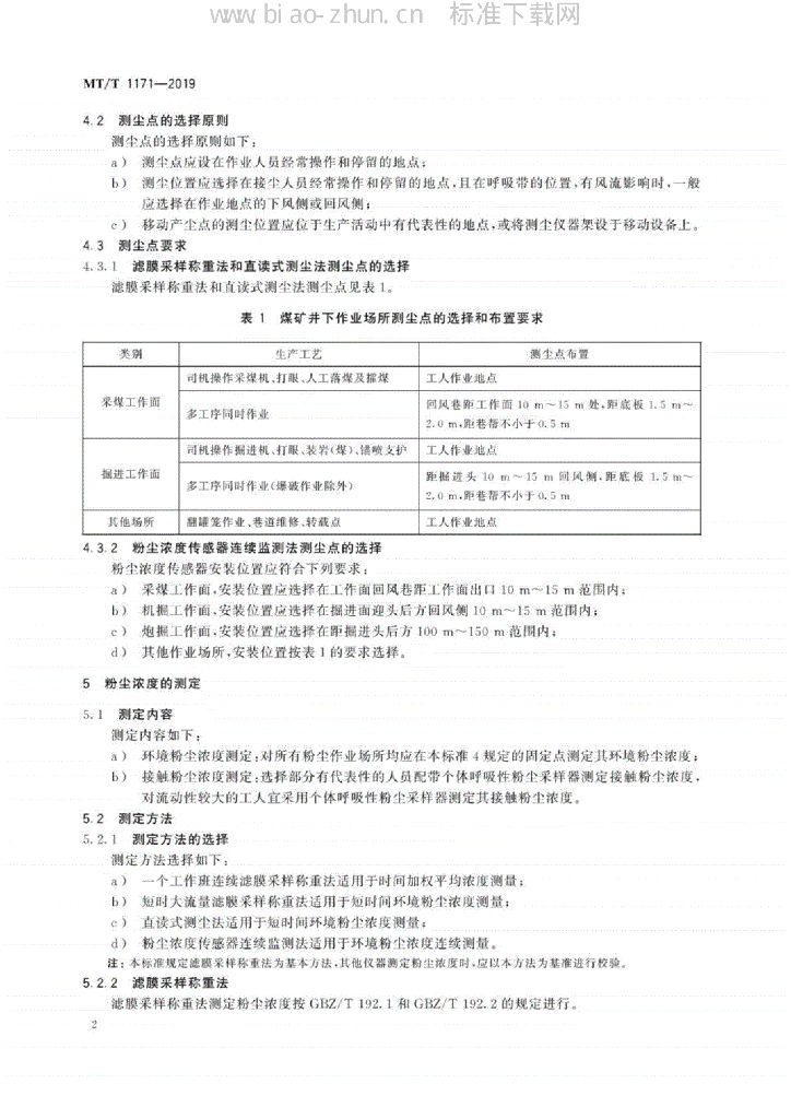 MT/T 1171-2019 煤矿井下浮游粉尘浓度检测技术规范