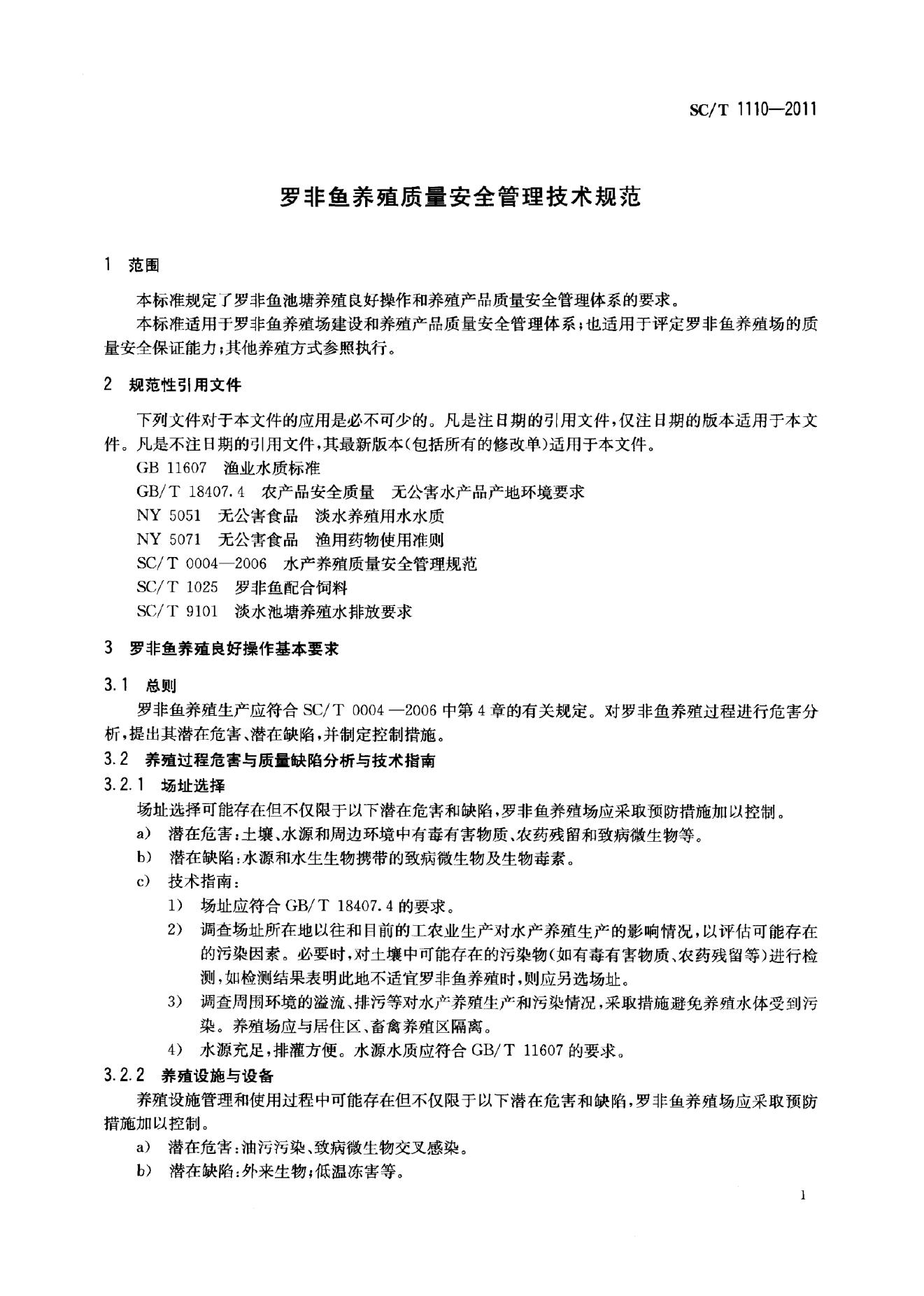 SC/T 1110-2011 罗非鱼养殖质量安全管理技术规范