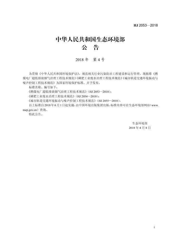 HJ 2053-2018 燃煤电厂超低排放烟气治理工程技术规范