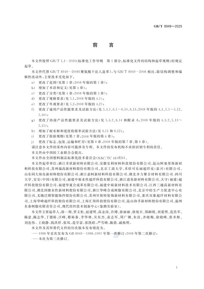 GB/T 8949-2025 聚氨酯人造革