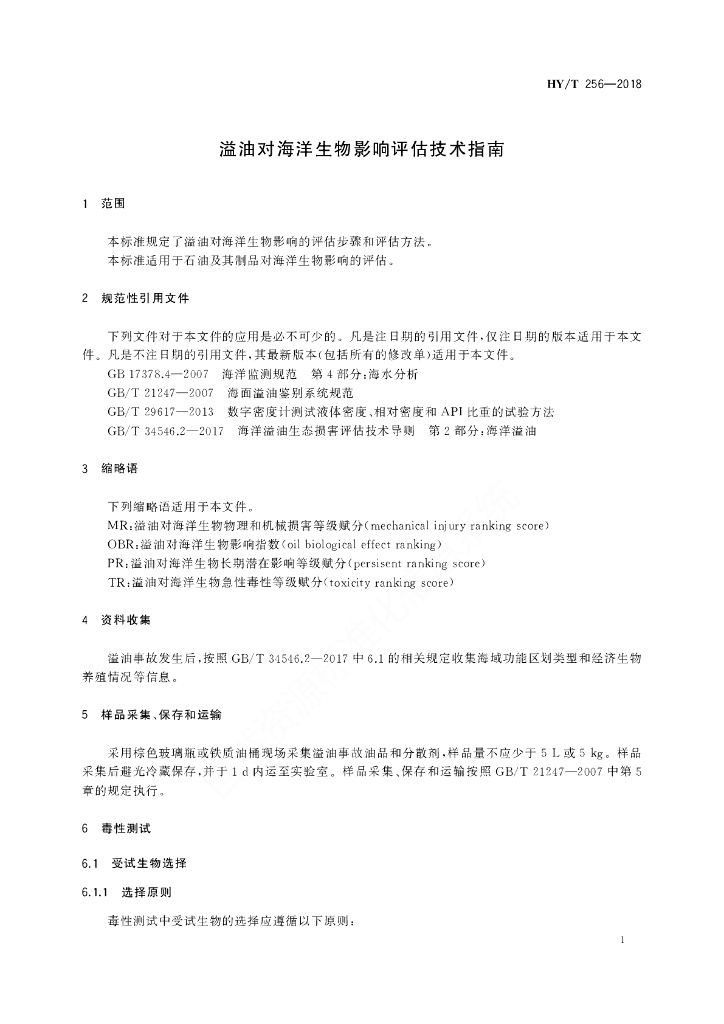 HY/T 256-2018 溢油对海洋生物影响评估技术指南