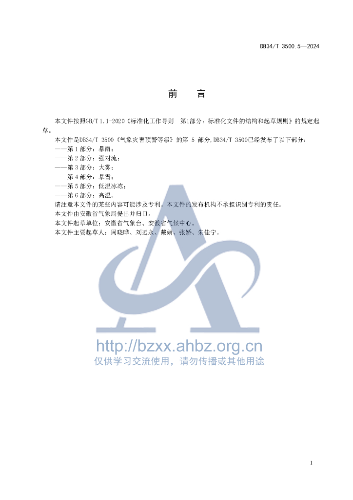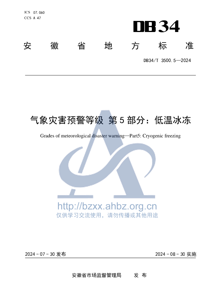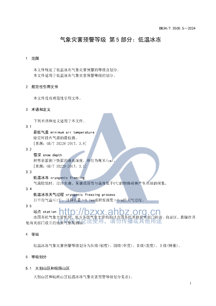DB34/T 3500.5-2024 气象灾害预警等级 第5部分:低温冰冻