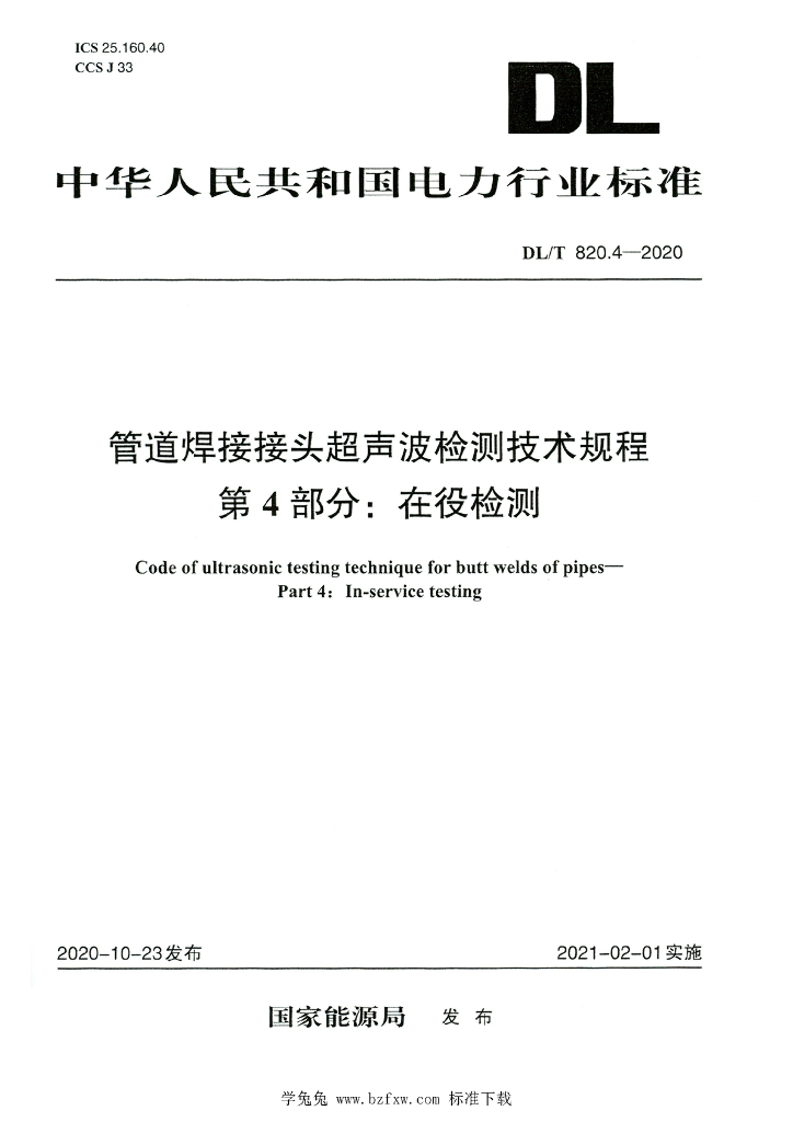 DL/T 820.4-2020 管道焊接接头超声波检测技术规程 第4部分:在役检测