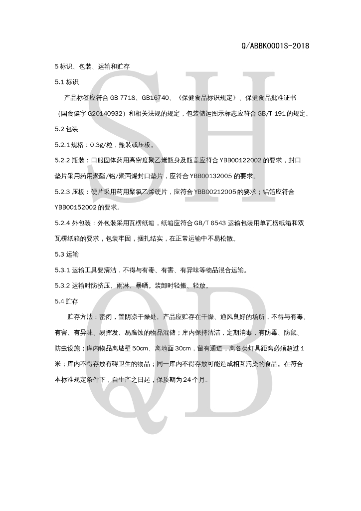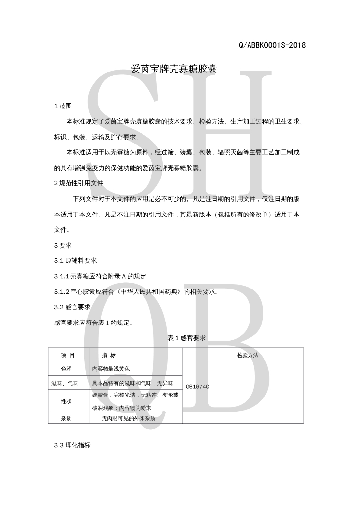 Q/ABBK 0001S-2018 爱茵宝牌壳寡糖胶囊