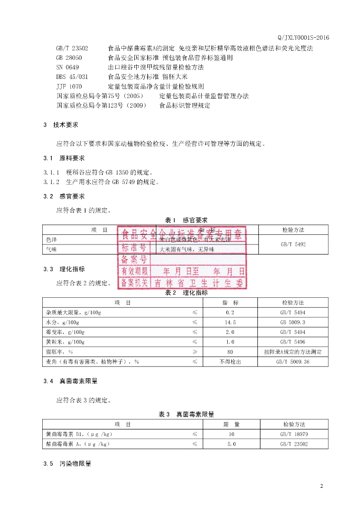 Q/JXLY 0001S-2016 吉林市吉兴粮业有限公司 胚芽米
