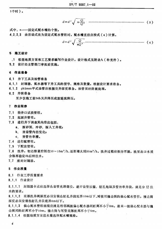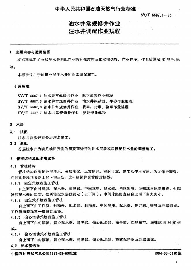 SY/T 5587.1-1993 油水井常规修井作业 注水井调配作业规程