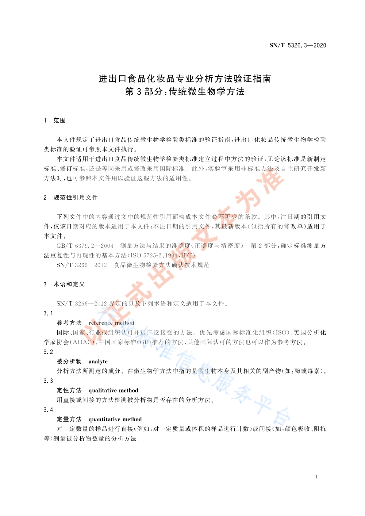 SN/T 5326.3-2020 进出口食品化妆品专业分析方法验证指南 第3部分:传统微生物学方法