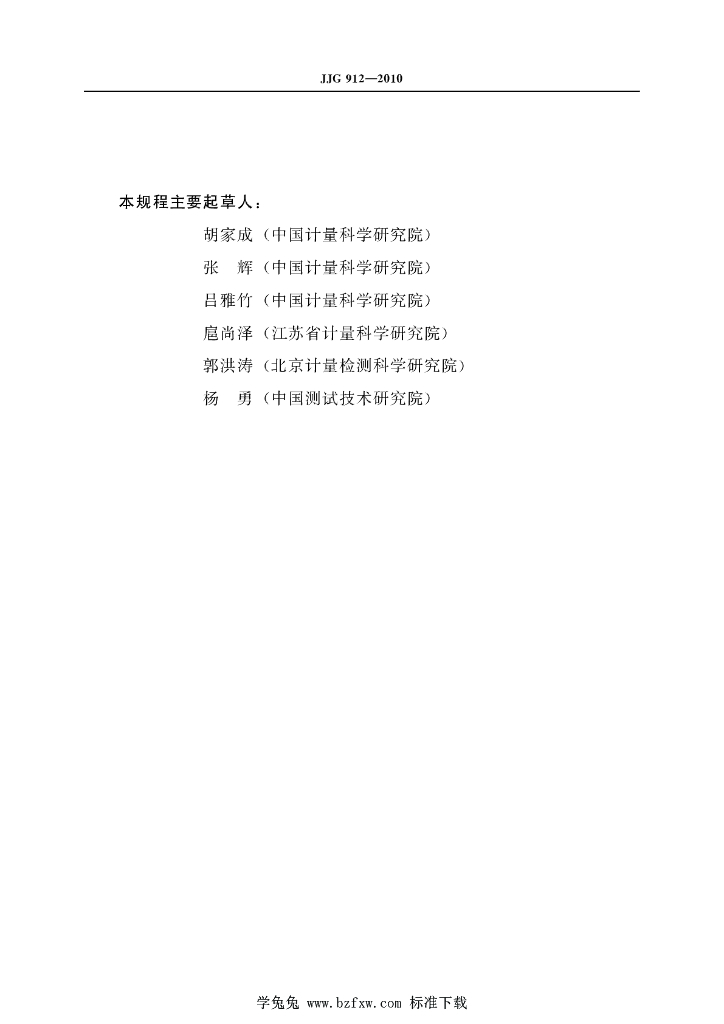 胡家成(中国计量科学研究院)、张辉(中国计量科学研究院)、吕雅竹(中国计量科学研究院)、息尚泽(江苏省计量科学研究院)、郭洪涛(北京计量检测科学研究院)、杨勇(中国测试技术研究院)