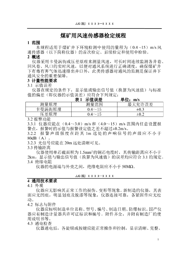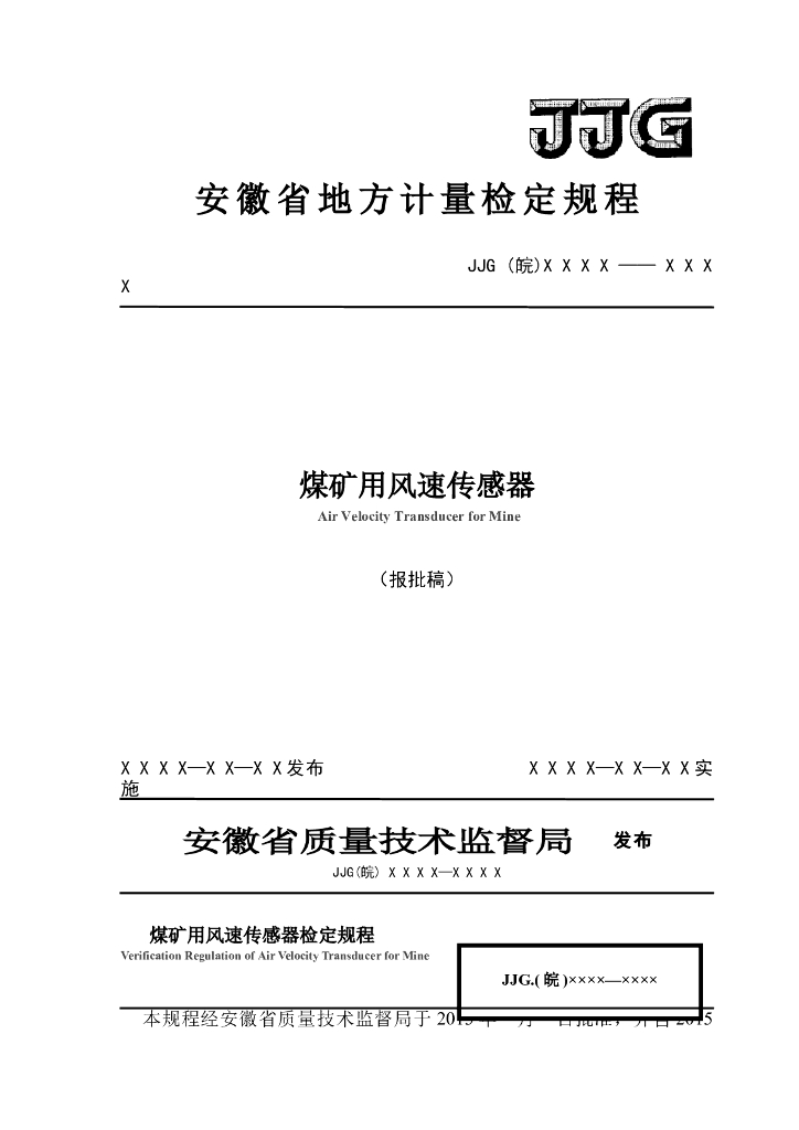 JJG(皖)51-2016 煤矿用风速传感器检定规程(报批稿)